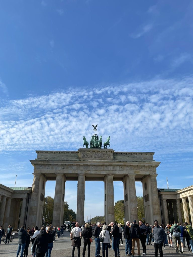 “Certo! Ecco alcune foto: questa è la Porta di Brandeburgo, davvero magica. Poi vedete il museo della comunicazione, un museo simbolo di Berlino. E infine, l’East Side Gallery, il lungo tratto del Muro di Berlino dipinto da artisti di tutto il mondo. Vi sembra un posto che potrebbe piacervi?”