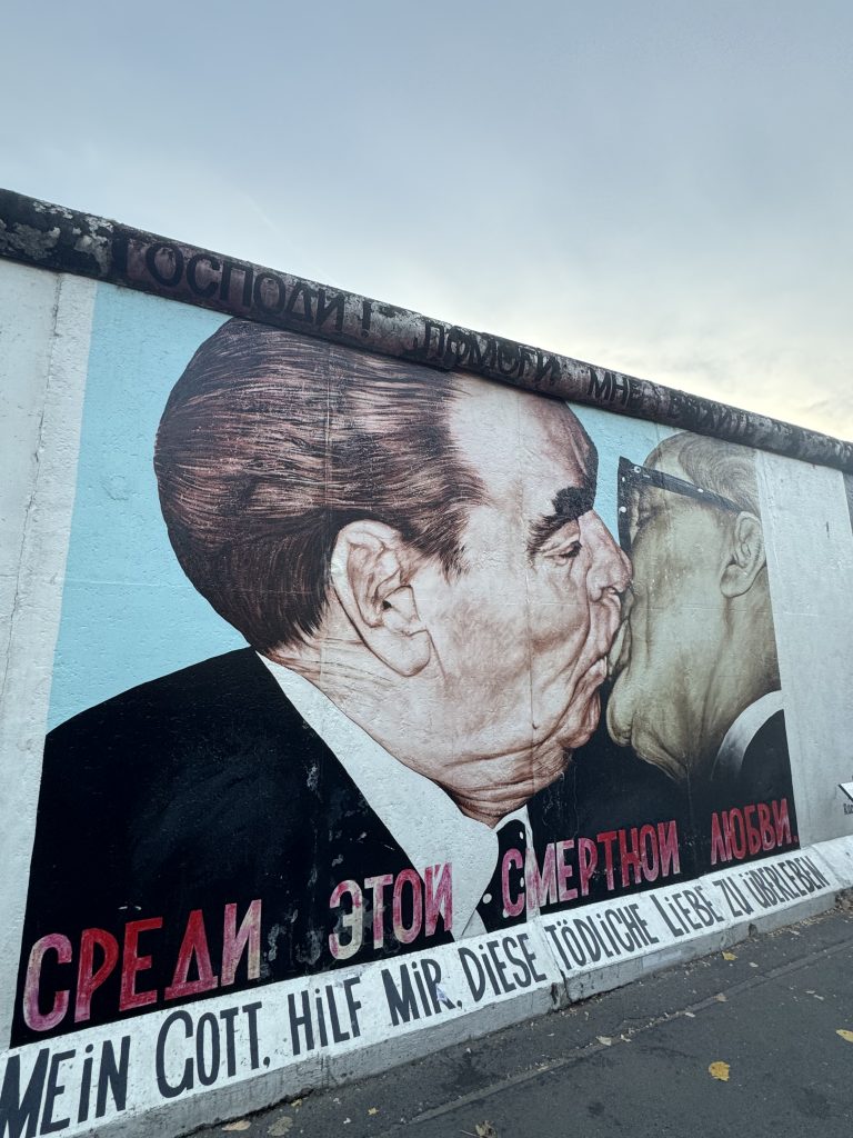 Durante il mio viaggio a Berlino, ho fotografato un pezzo dell’East Side Gallery, una sezione del Muro di Berlino che è stata trasformata in una galleria d’arte a cielo aperto. È uno dei luoghi più famosi della città, dove artisti da tutto il mondo hanno dipinto murales che parlano di libertà, speranza e cambiamento. Questo tratto del Muro mi ha colpito molto perché rappresenta non solo un pezzo di storia, ma anche il desiderio di un futuro migliore.