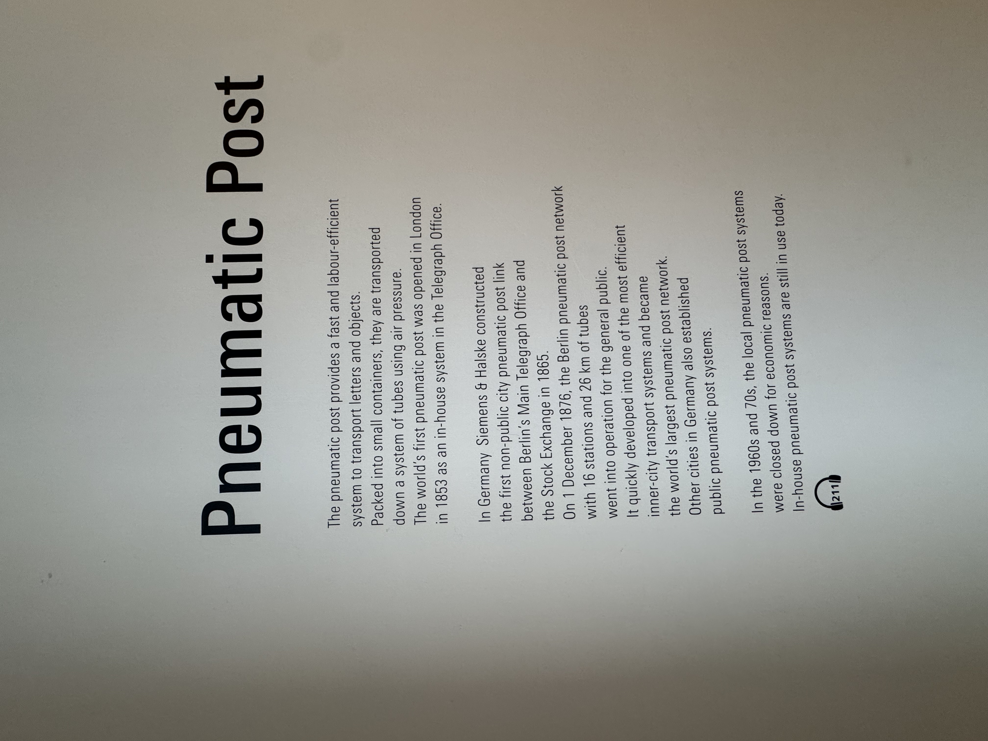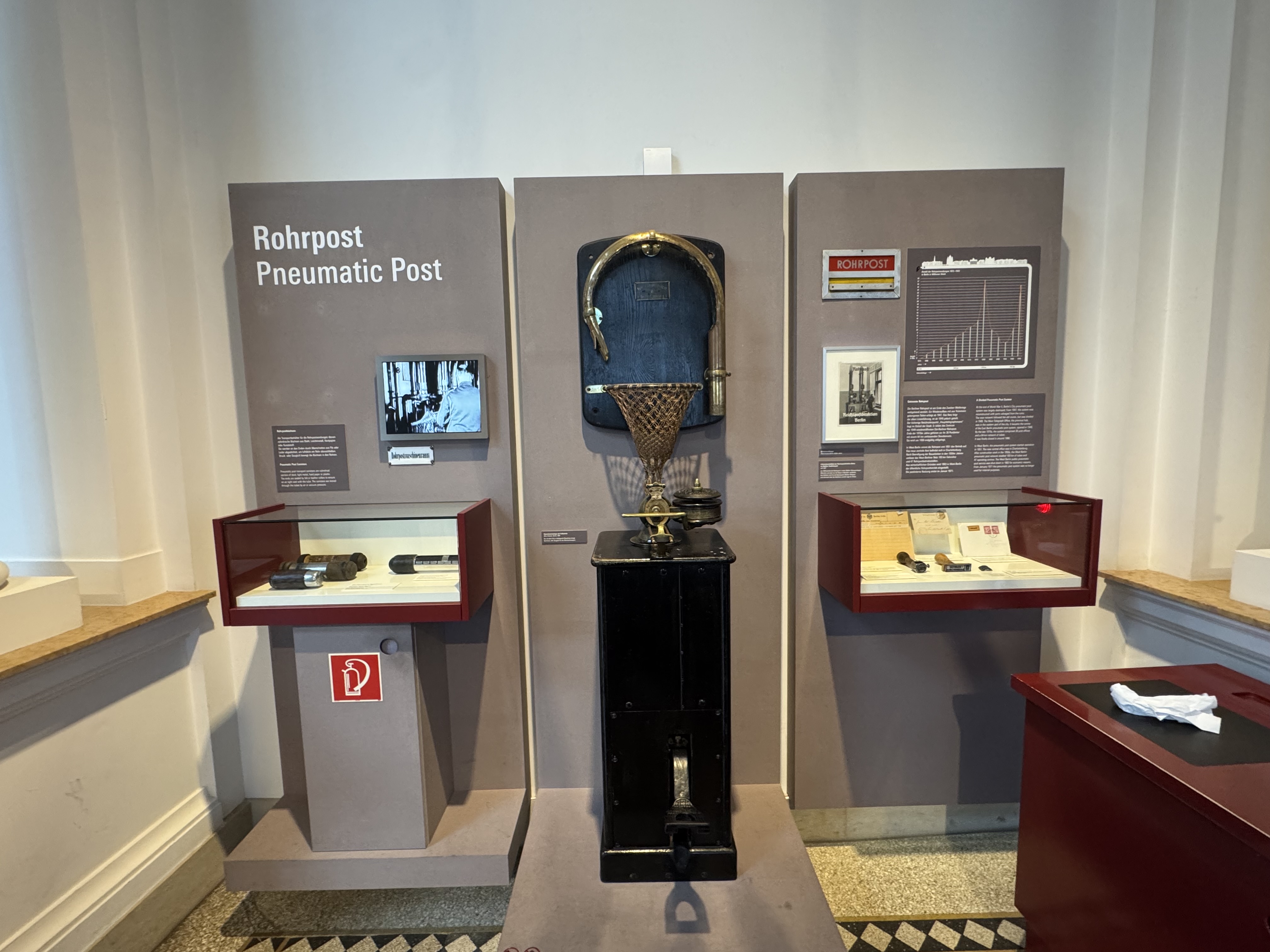 Durante la visita al Museo della Comunicazione, ho visto come già molti anni fa si cercassero soluzioni innovative per rendere più veloce lo scambio di informazioni. Mi ha colpito in particolare il sistema della posta pneumatica (Rohrpost), che faceva viaggiare messaggi e documenti dentro tubi che attraversavano la città, una soluzione rapida e davvero ingegnosa per l’epoca.